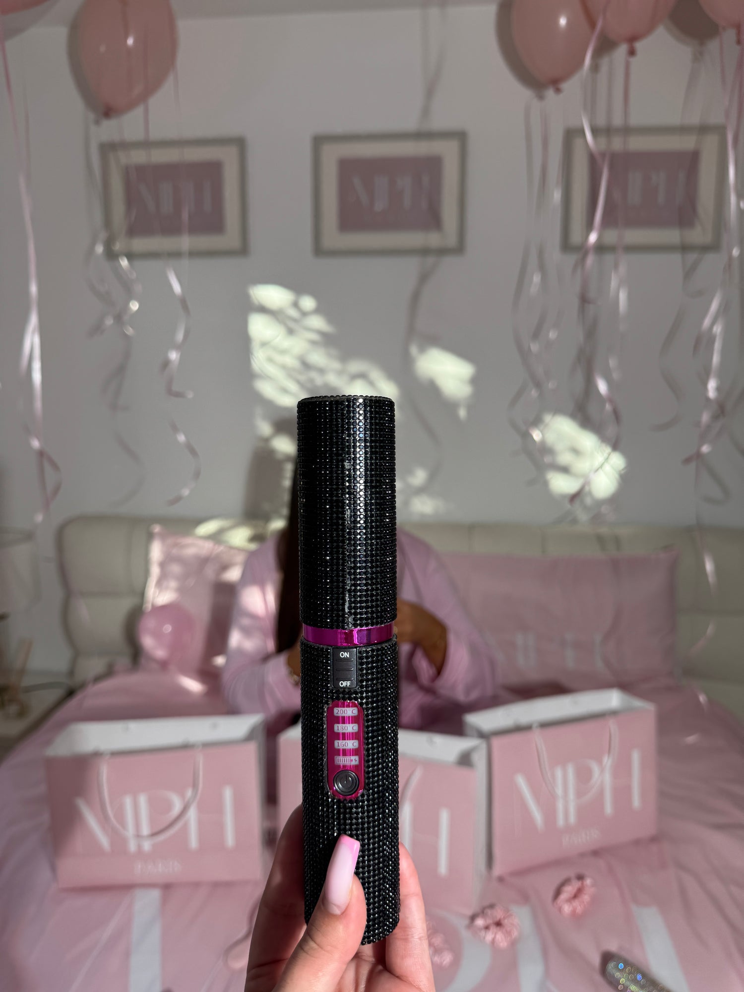 Le mini lisseur sans fil orné de cristaux élégants, MPH Paris transforme votre routine de coiffage en une expérience glamour et pratique. Compact et facilement transportable, il se glisse aisément dans votre sac à main pour vous accompagner partout où vous allez